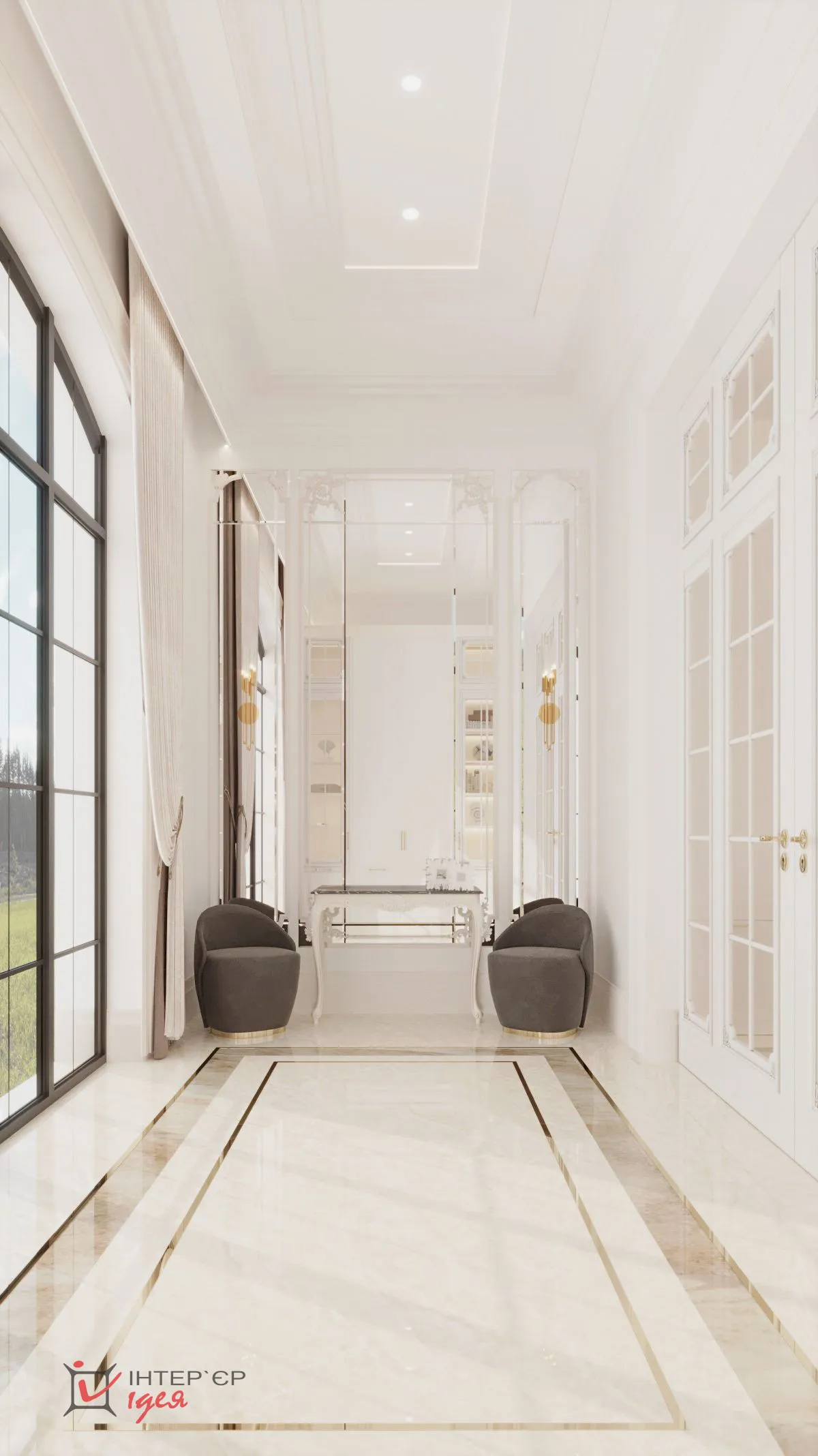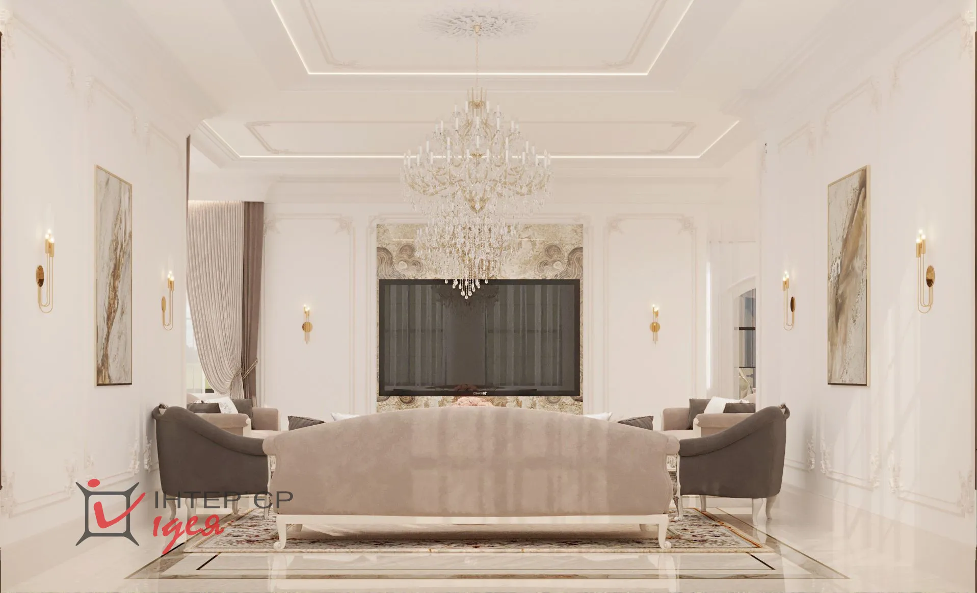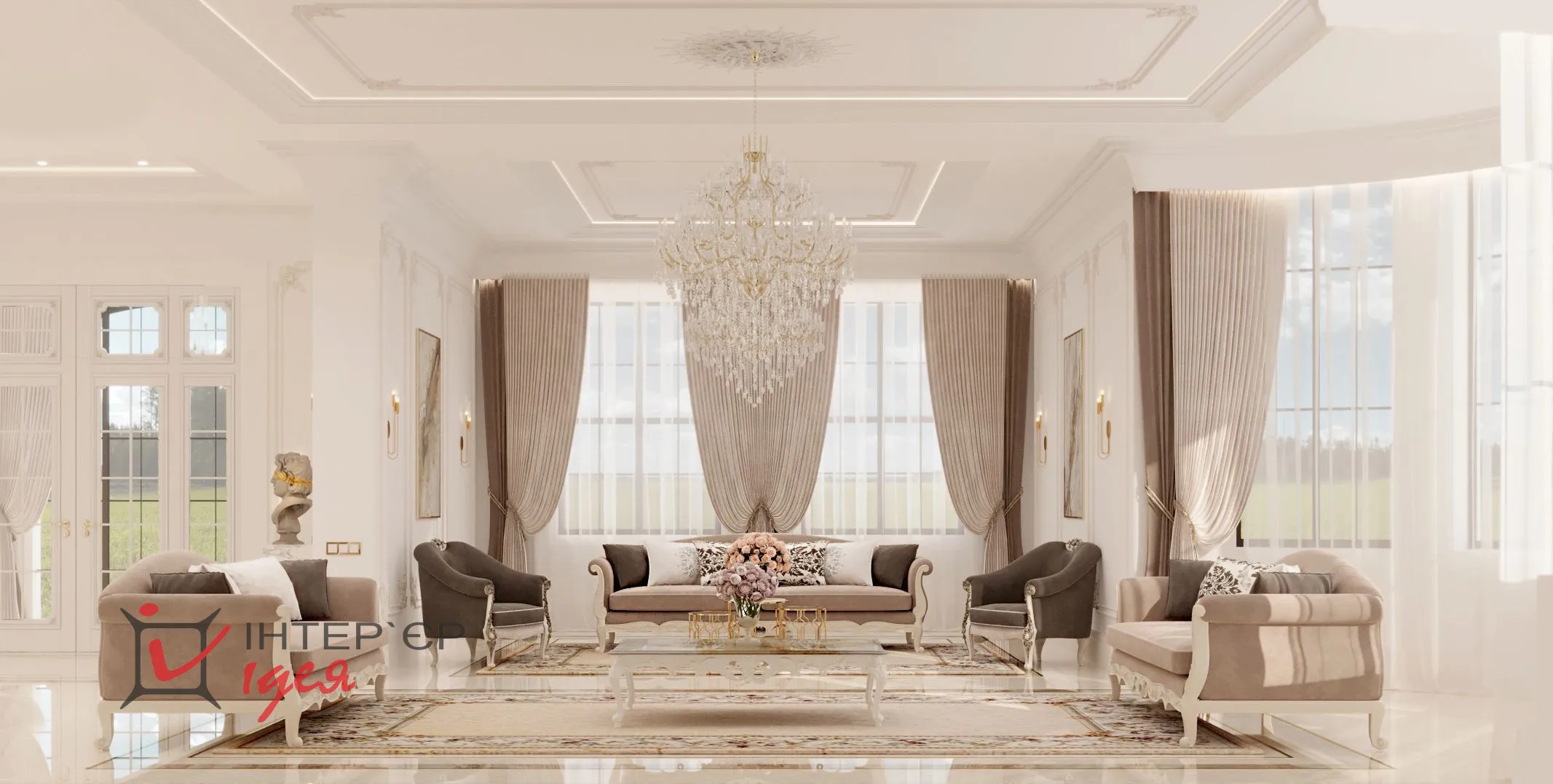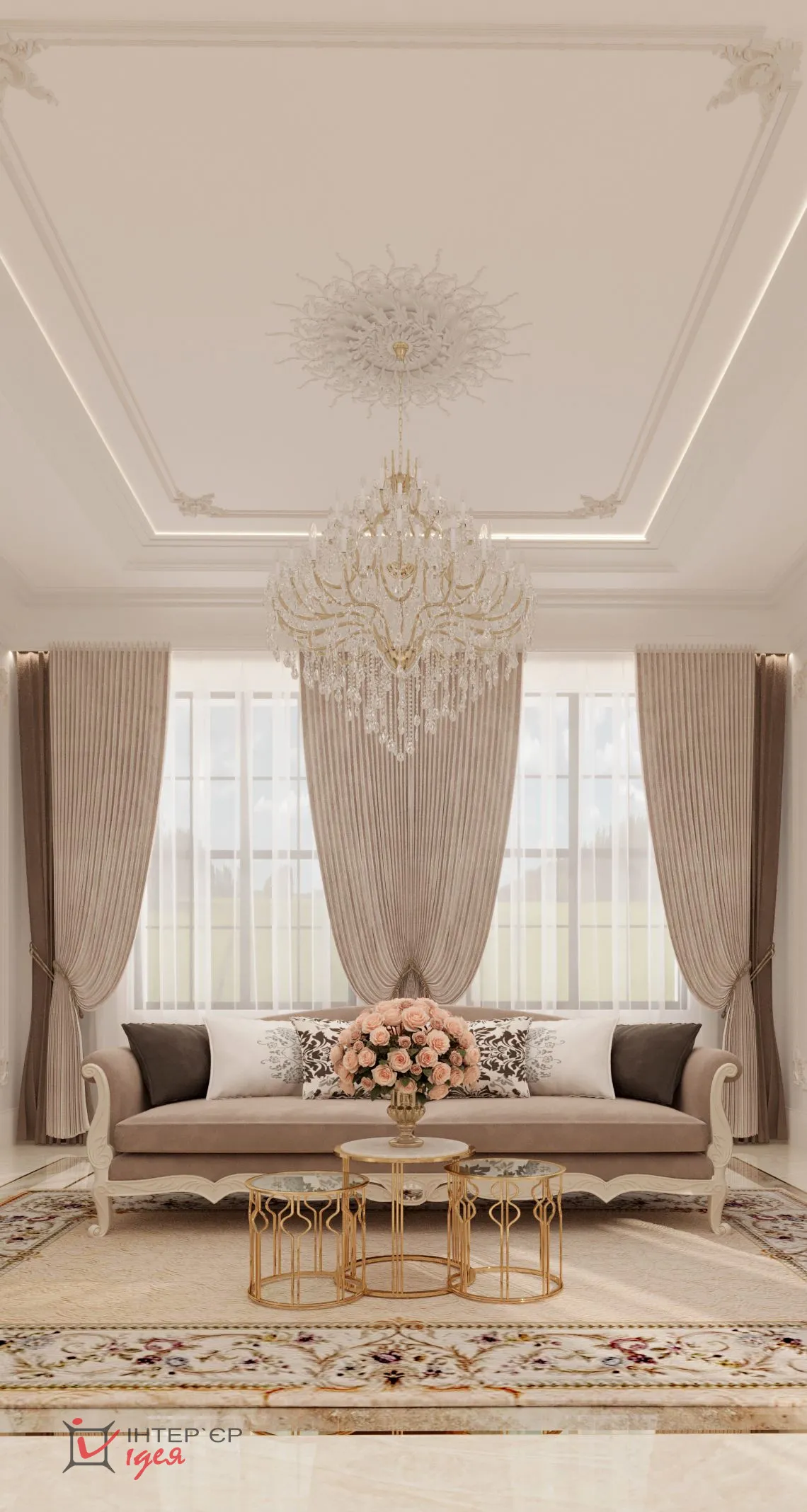 В дизайне интерьера преобладают светлые, пастельные оттенки (бежевый, кремовый, золотистый), что создает атмосферу роскоши и изысканности.