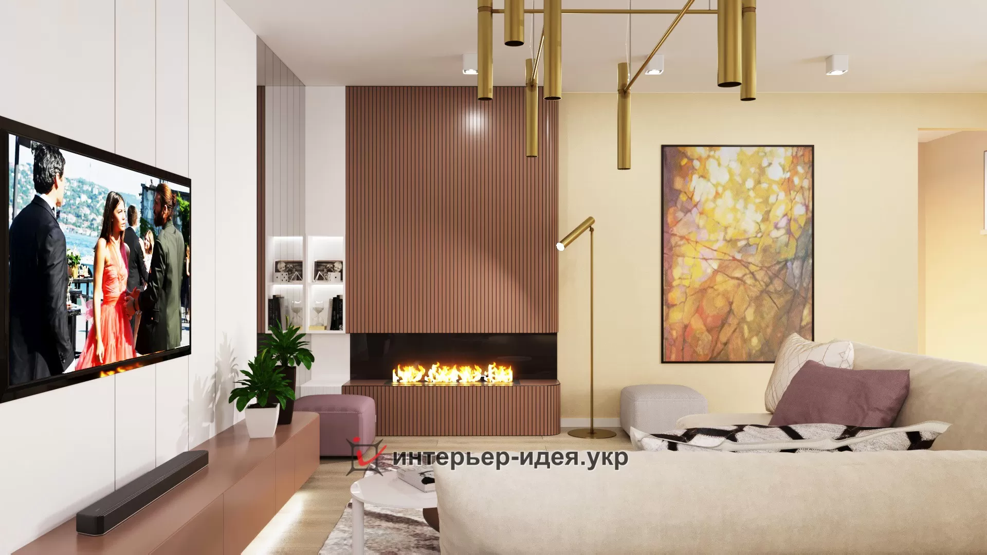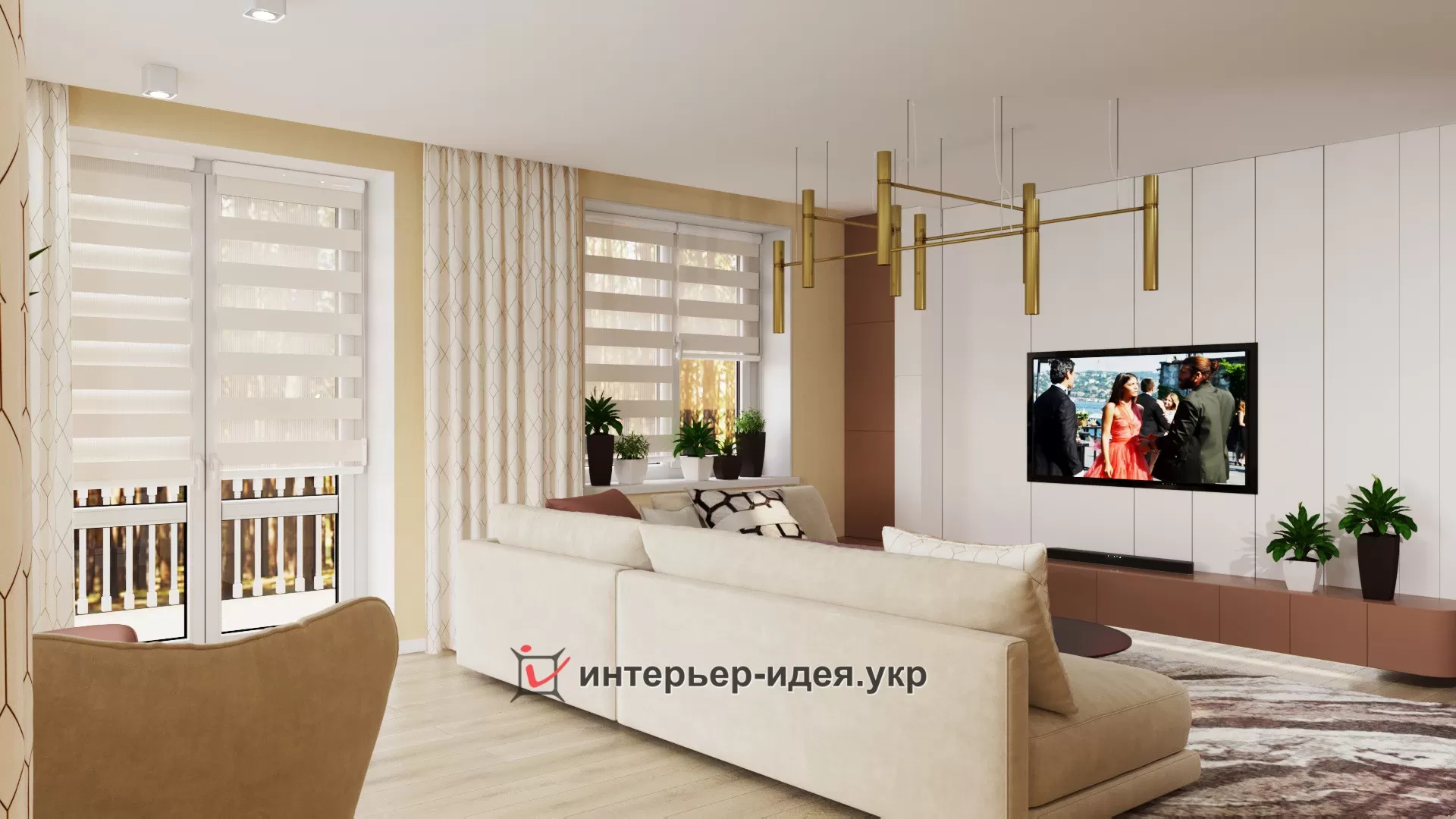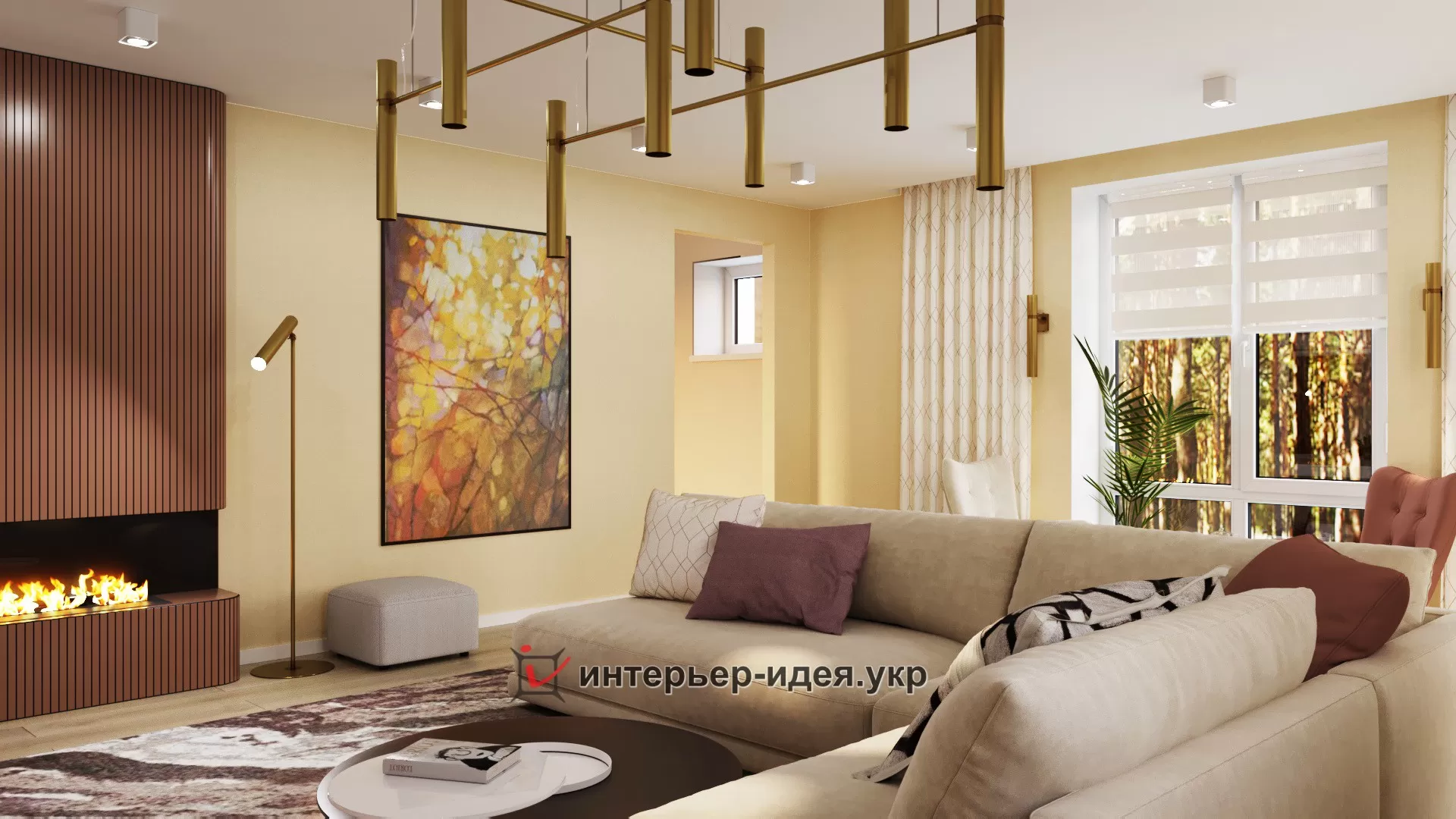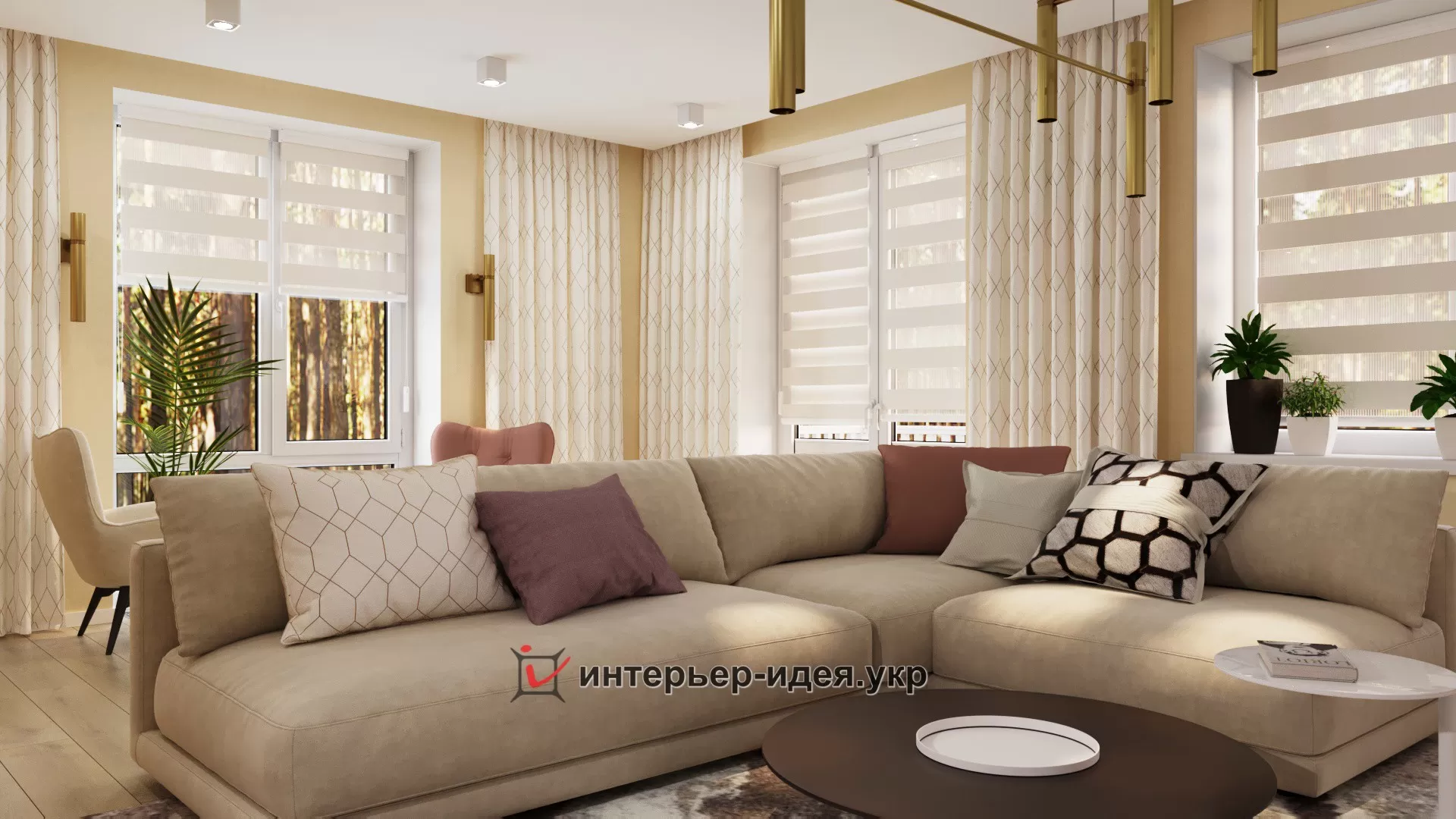 Очень важную роль в данной комнате отыгрывает мягкая мебель и текстиль.