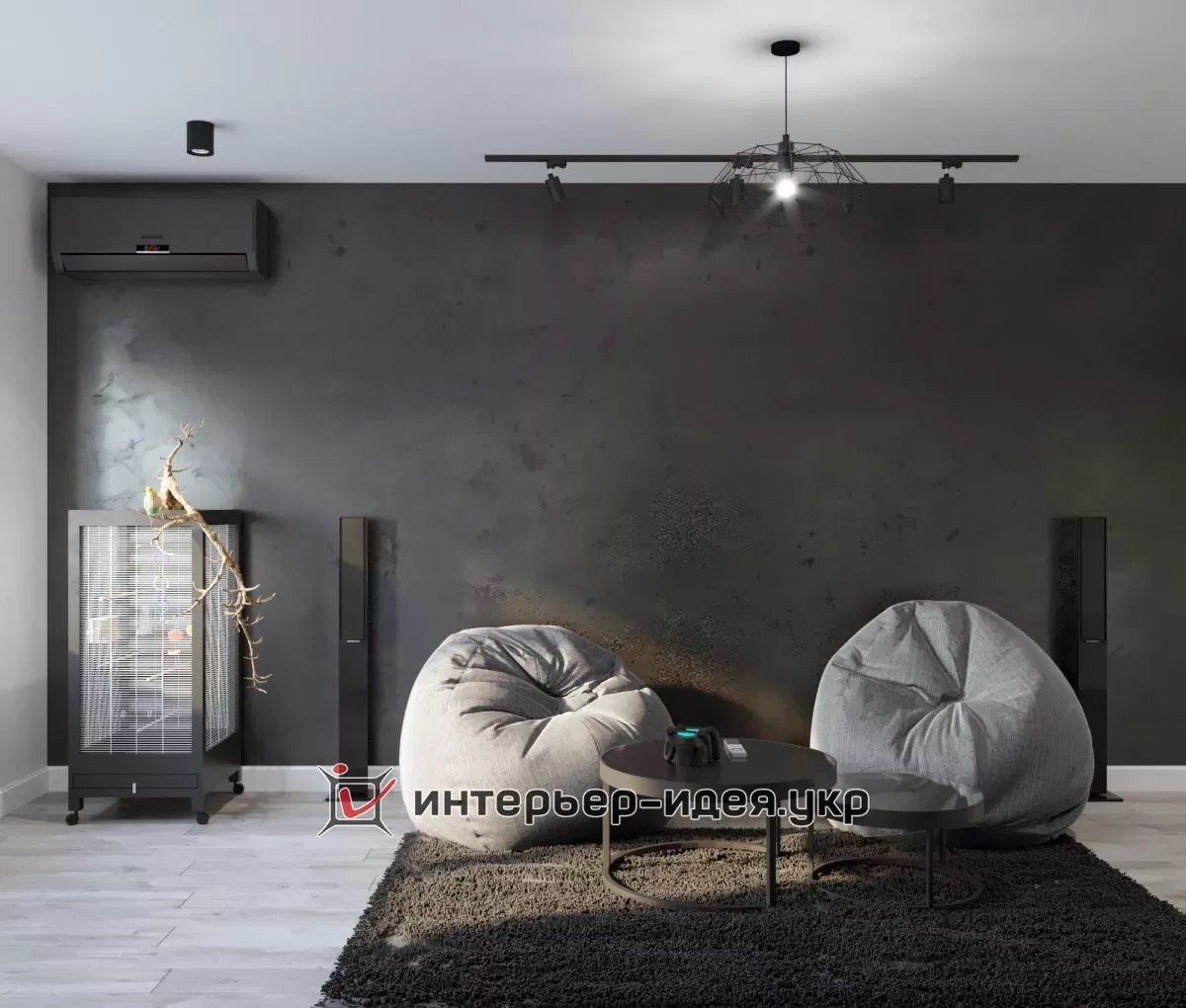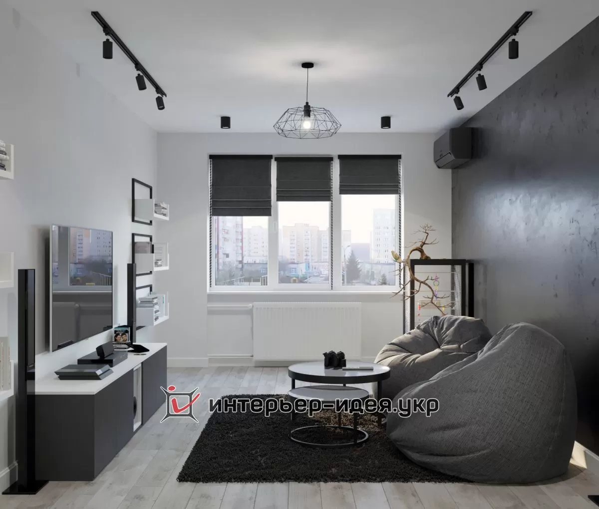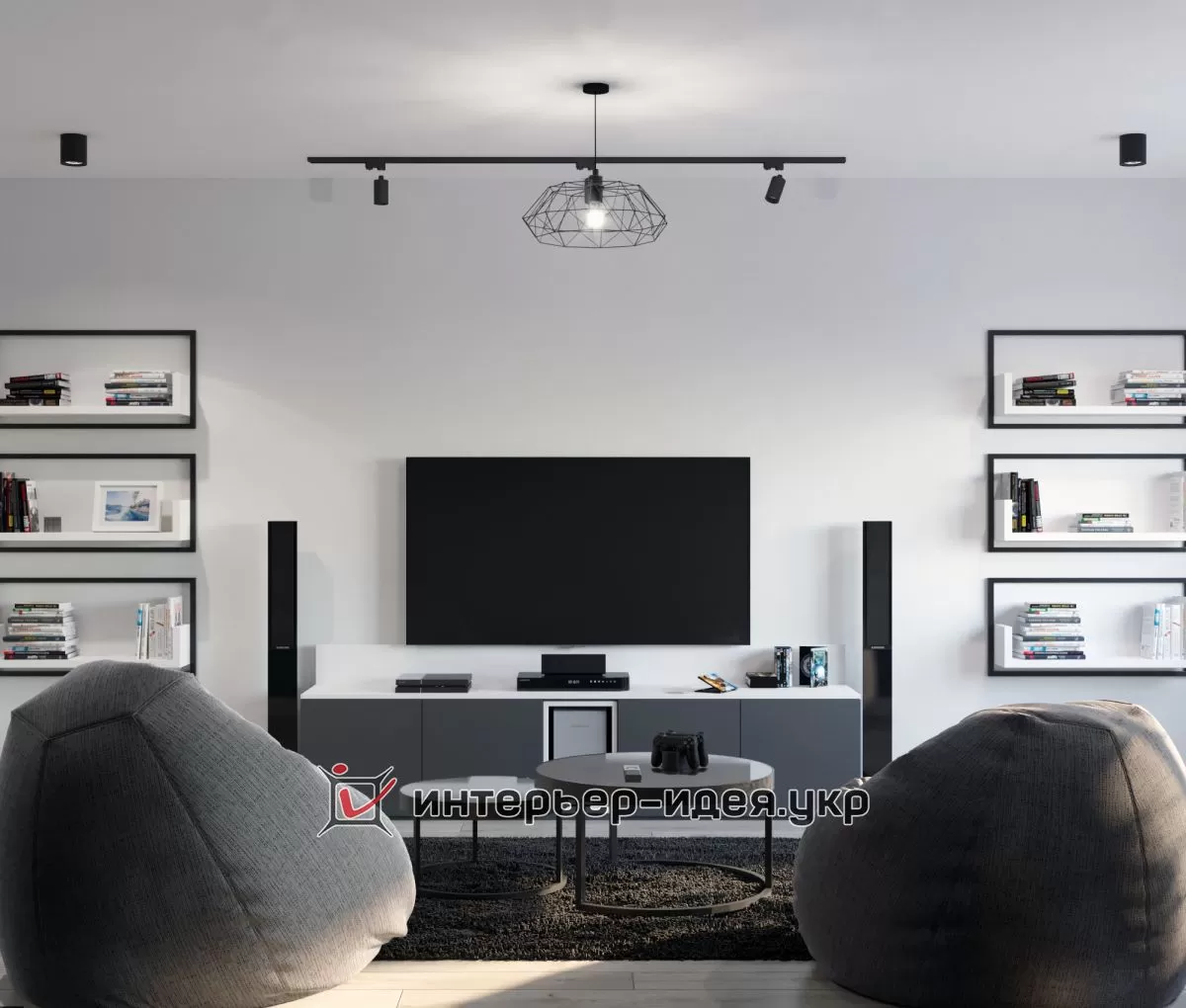 В жизни в эту комнату поступает очень мало дневного света, что бы исправить эту ситуацию было решено сделать стены в белом цвете, а так же за счет искусственного освещения удалось сделать комнату достаточно светлой.