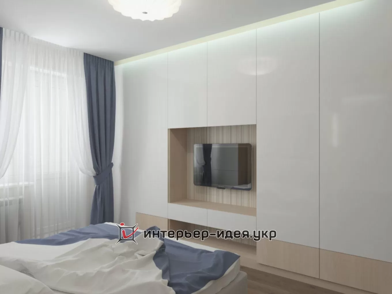 Дизайн спальни в современном стиле в бежево-синем цвете - Звоните и заказывайте интерьер спальни по тел. 097-744-08-67