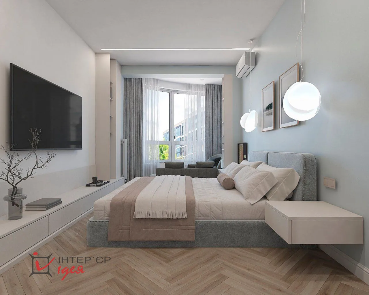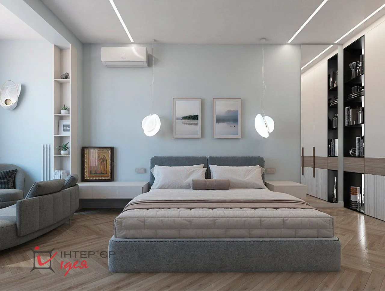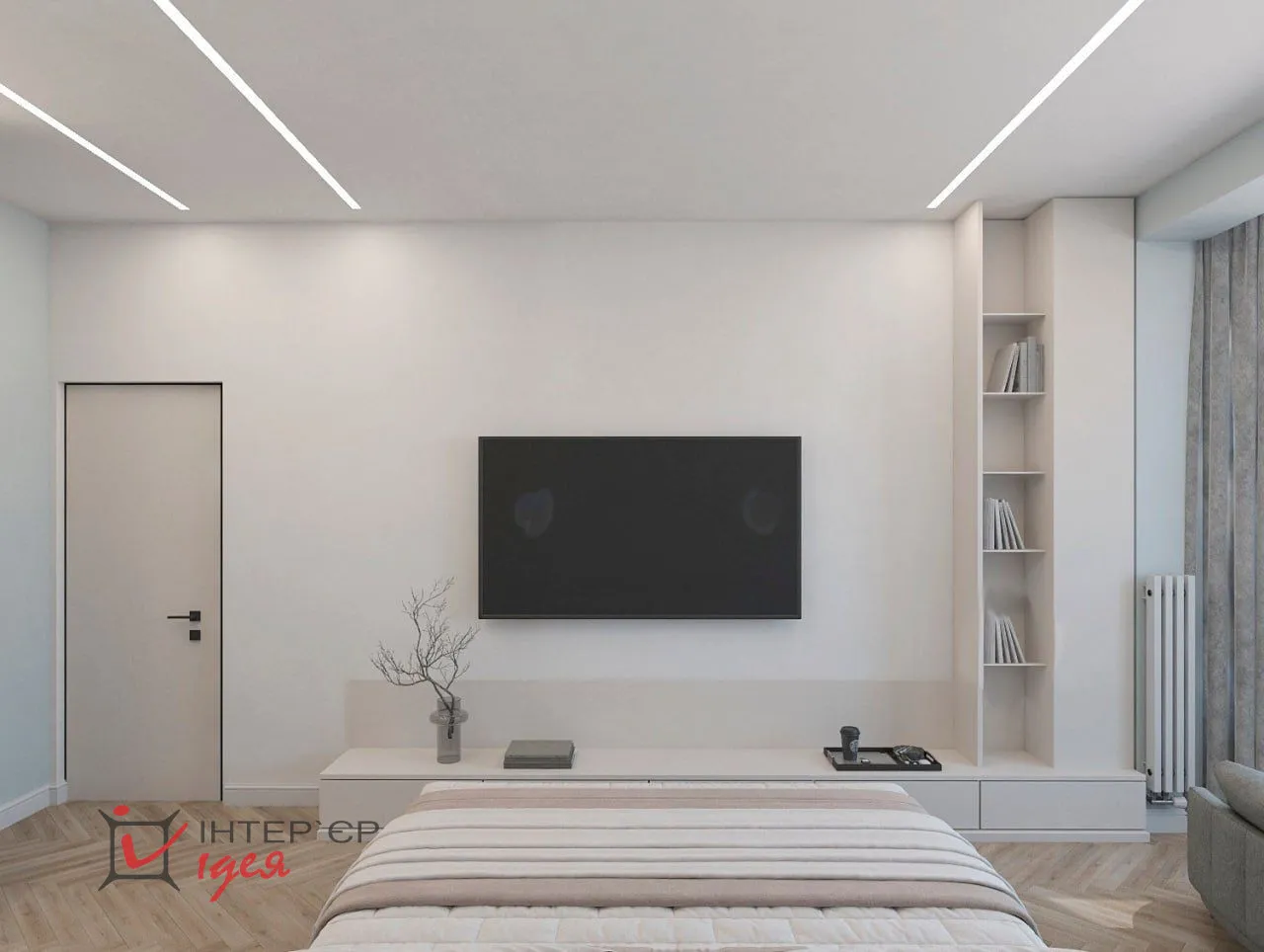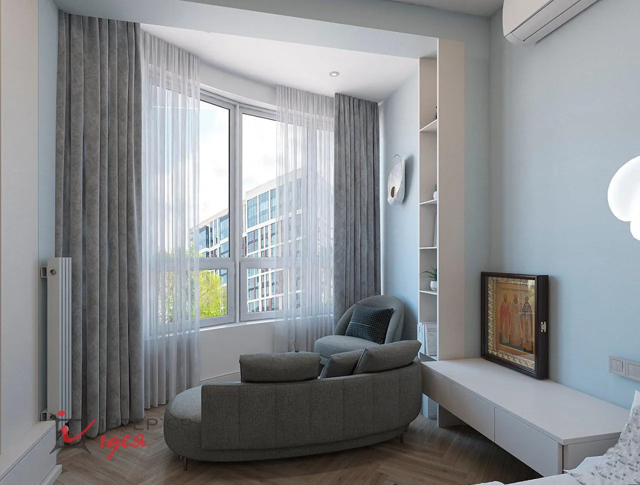 Освещение продумано до мелочей, различные сценарии света. В этой комнате всегда царит гармония, а морской горизонт за окном словно приглашает к моментам тишины и вдохновения.