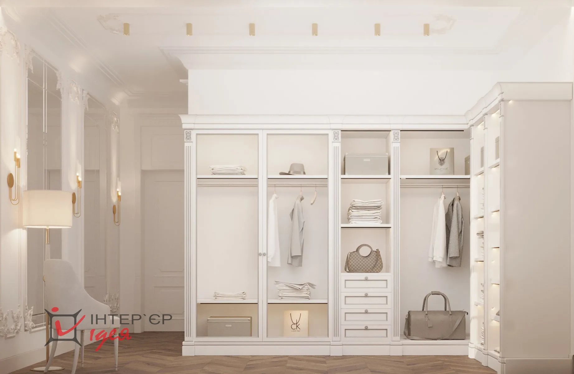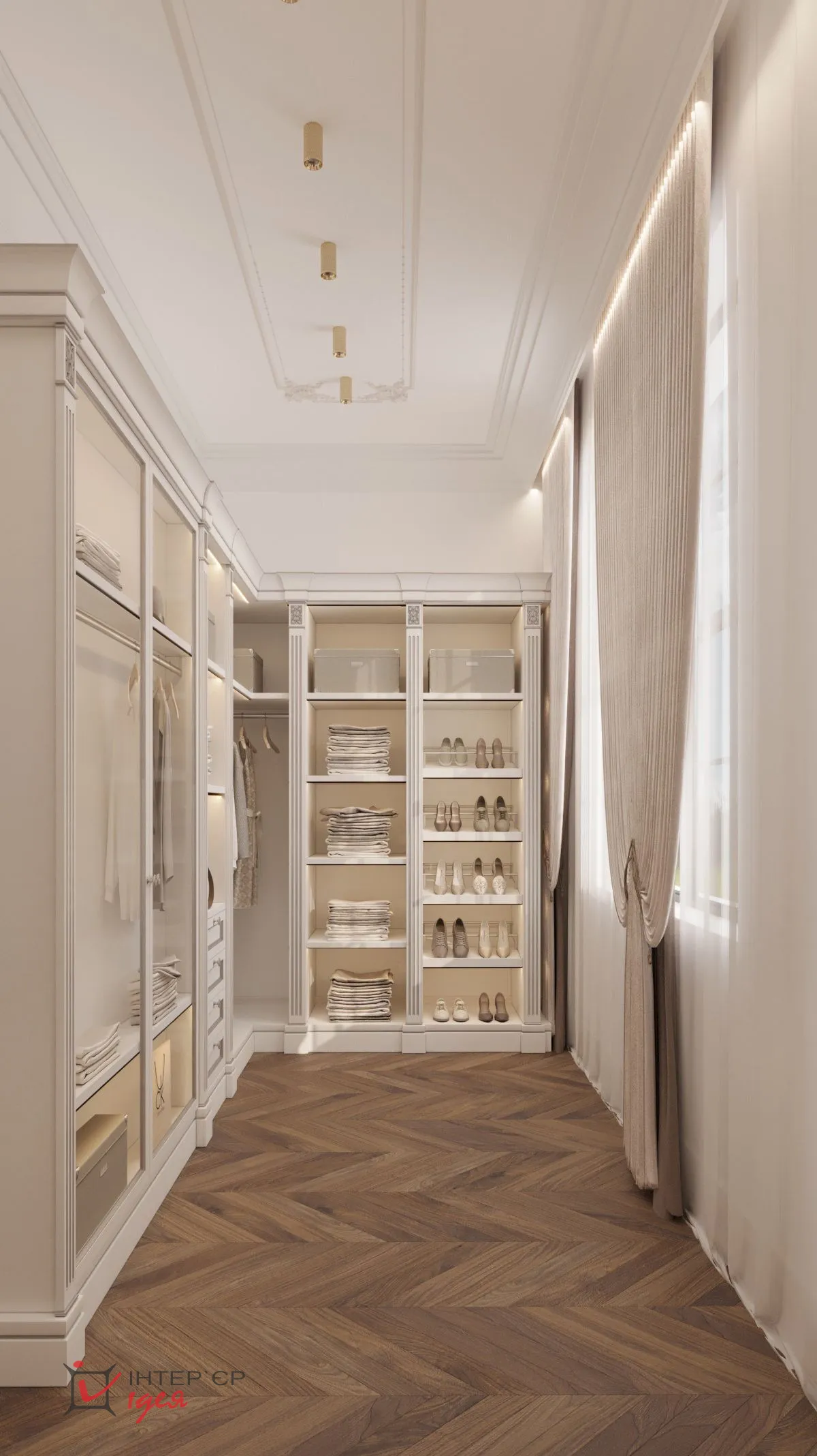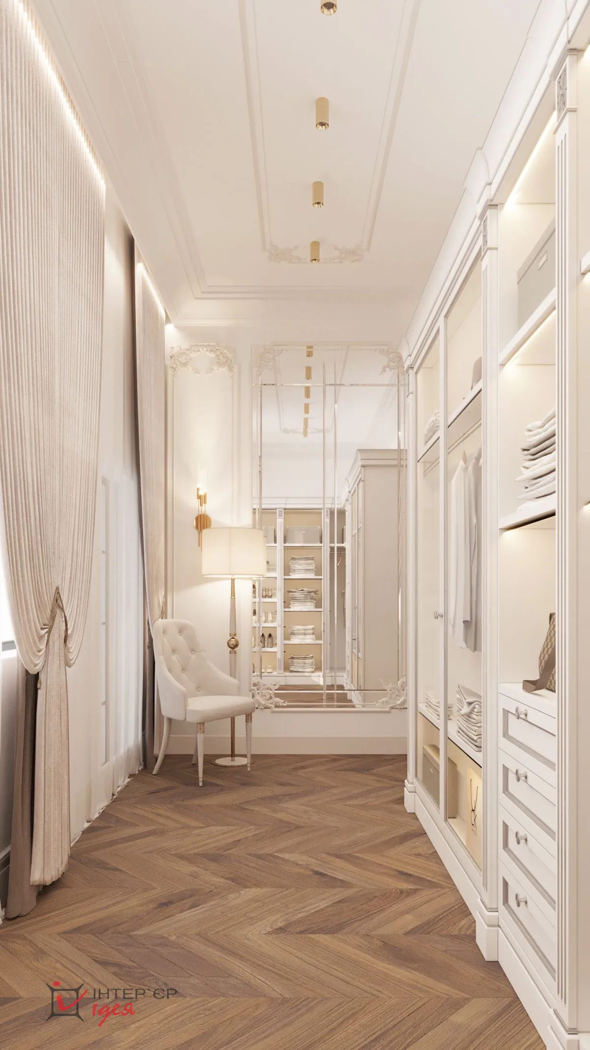 Также данная мастер спальня имеет свою большую гардеробную комнату.