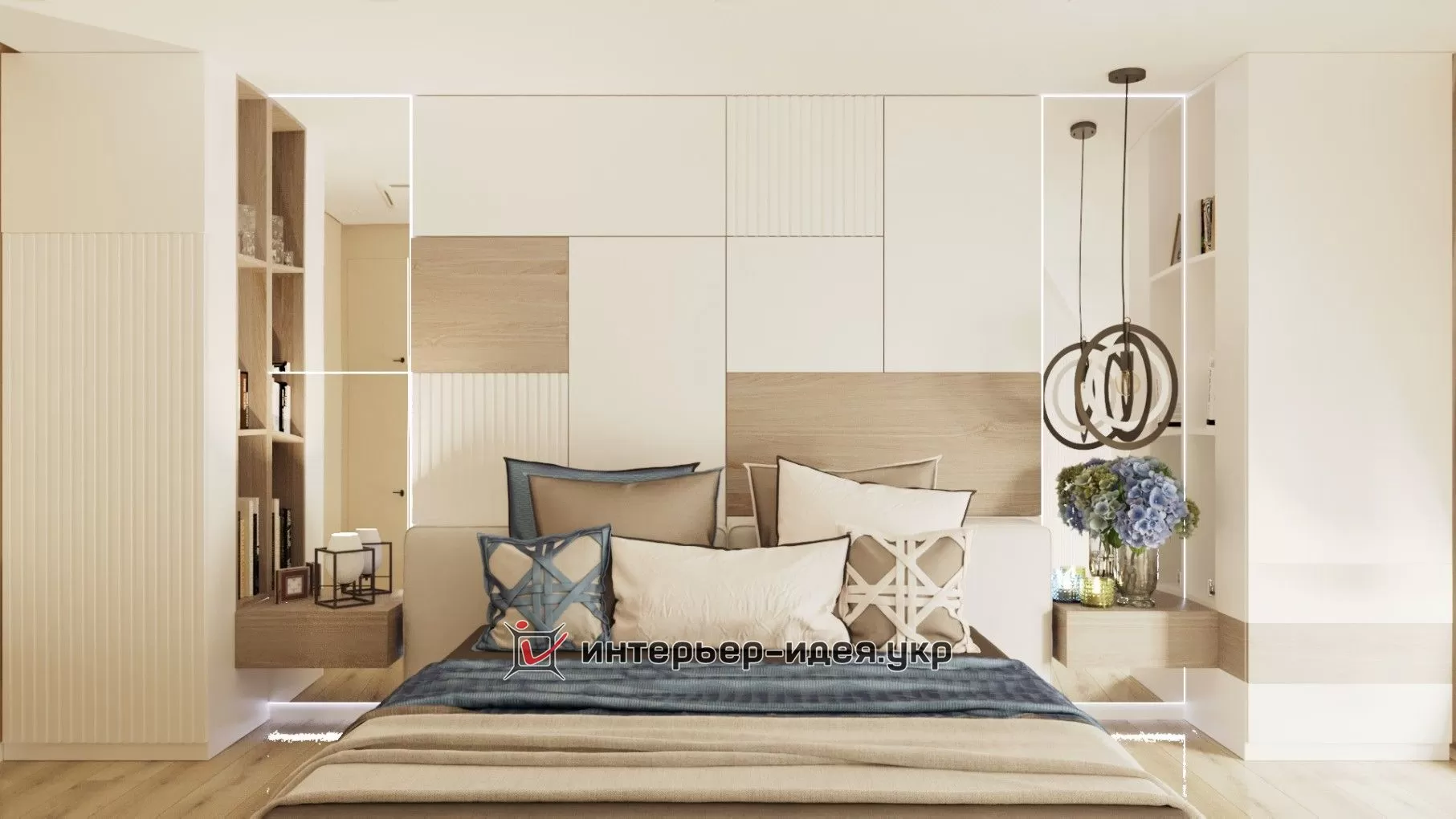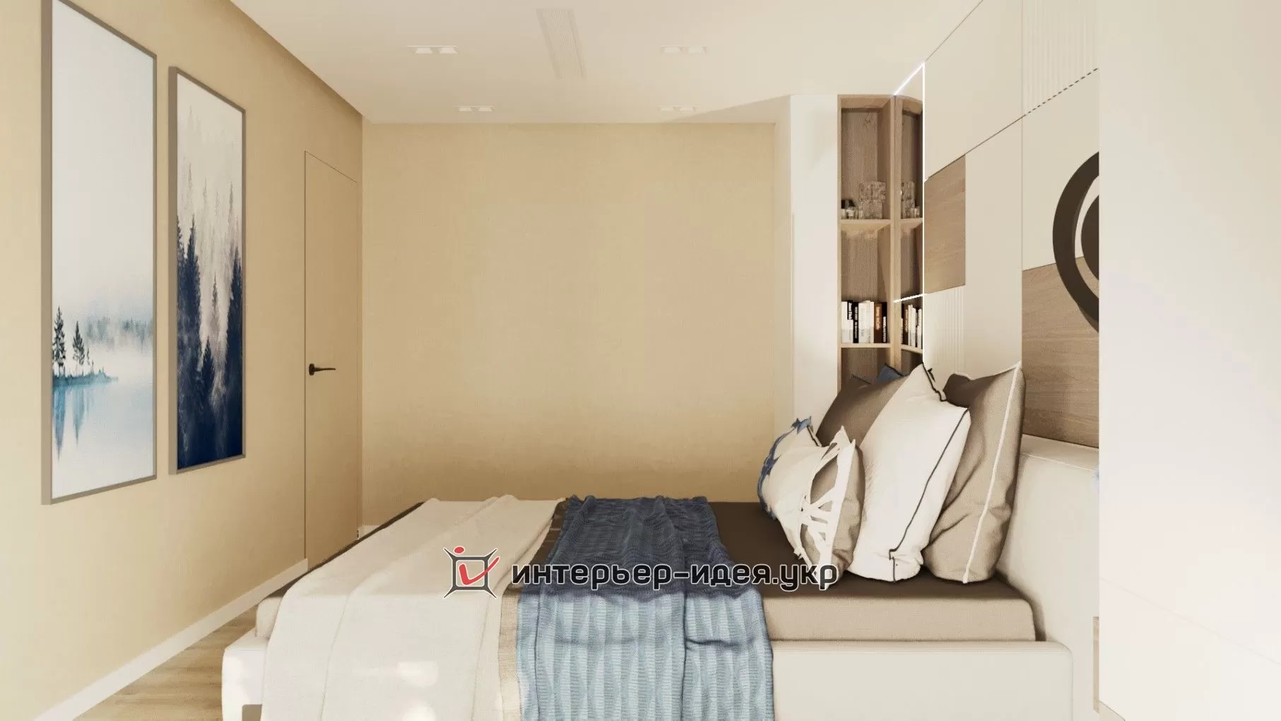 Спальня выполнена в минималистическом стиле с минимальным добавлением декора.