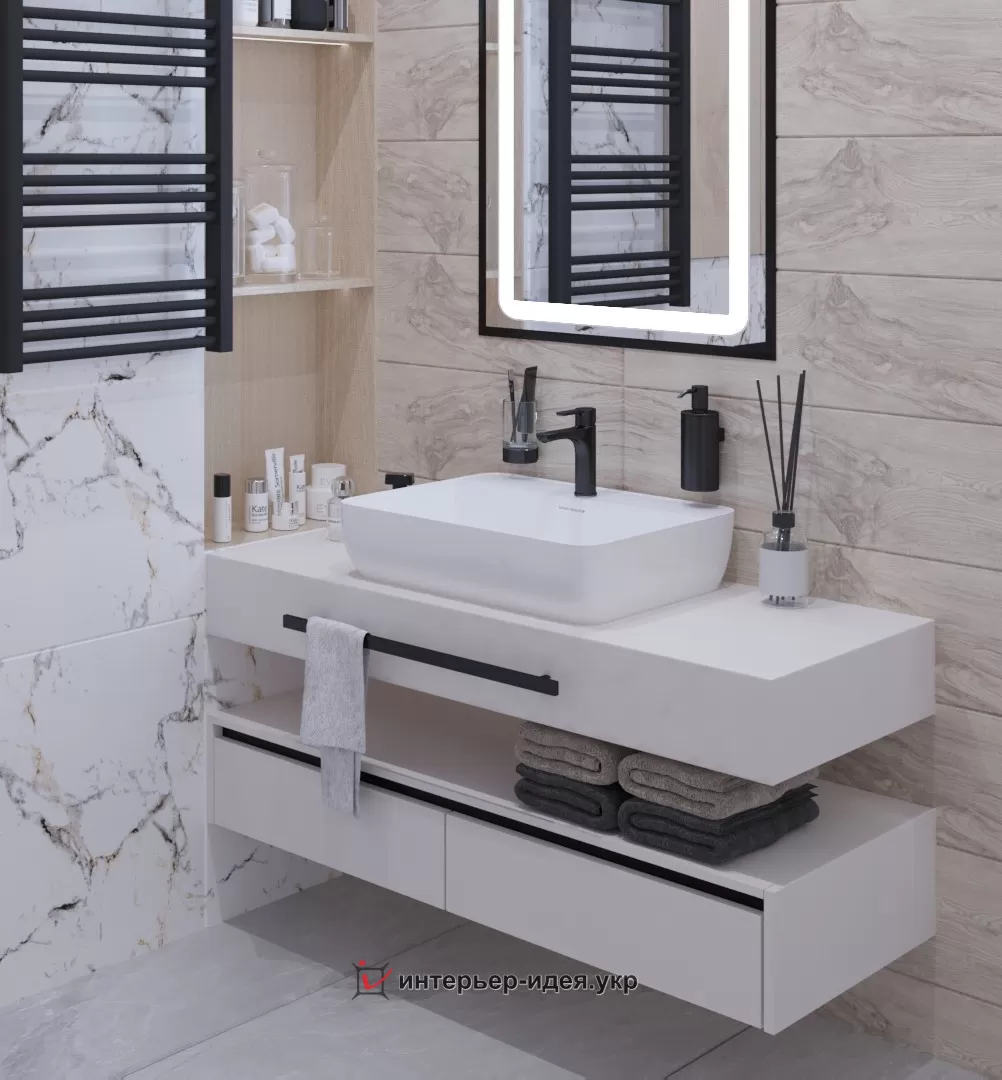 Под умывальником – также подвесная полка с выдвижными ящиками.