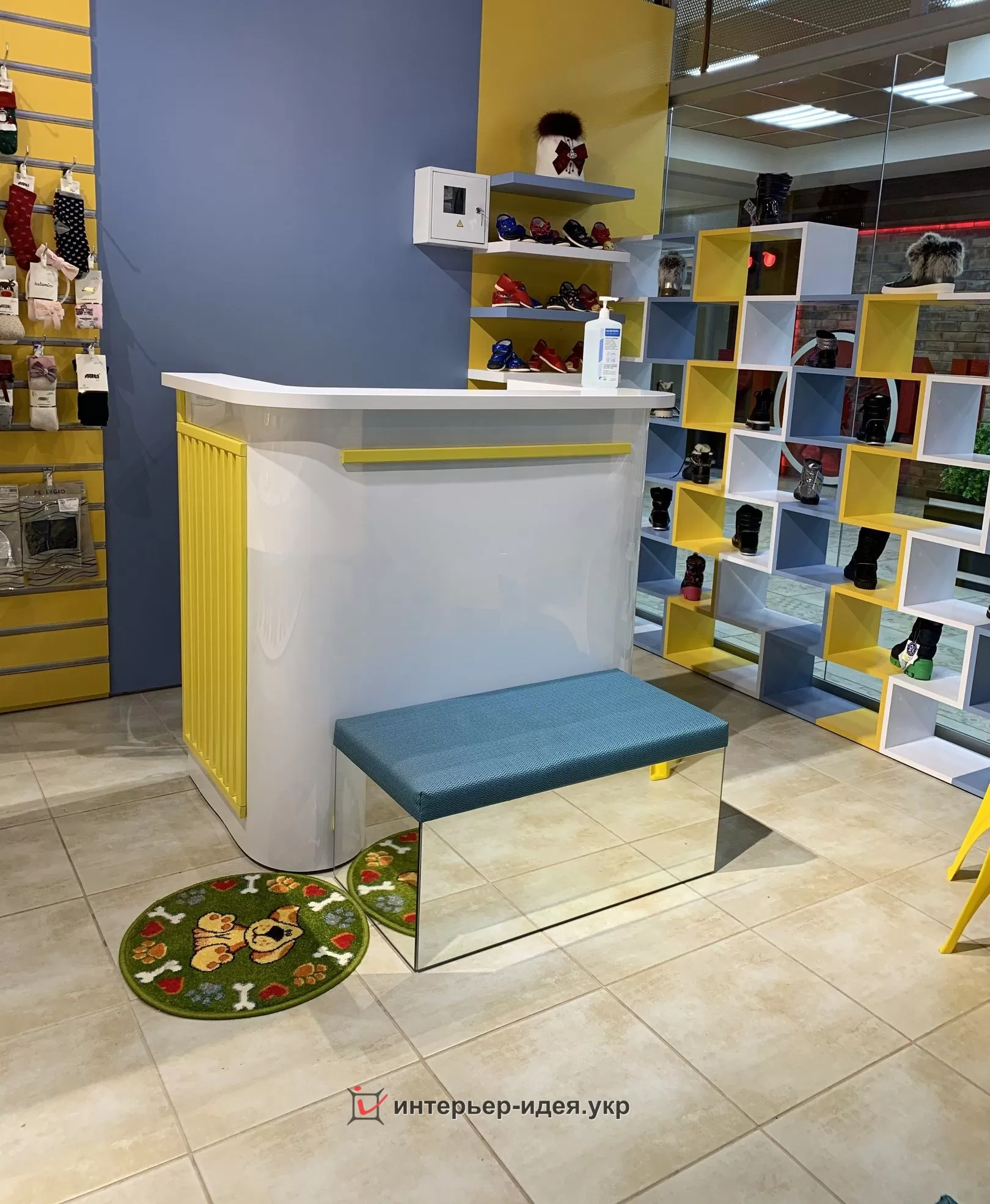 Мебель изготовлена из ДСП и МДФ. ДСП "SWISS KRONO" цвет "3271 VL Холодный голубой" и "EGGER" "U114 ST9 желтый бриллиант".