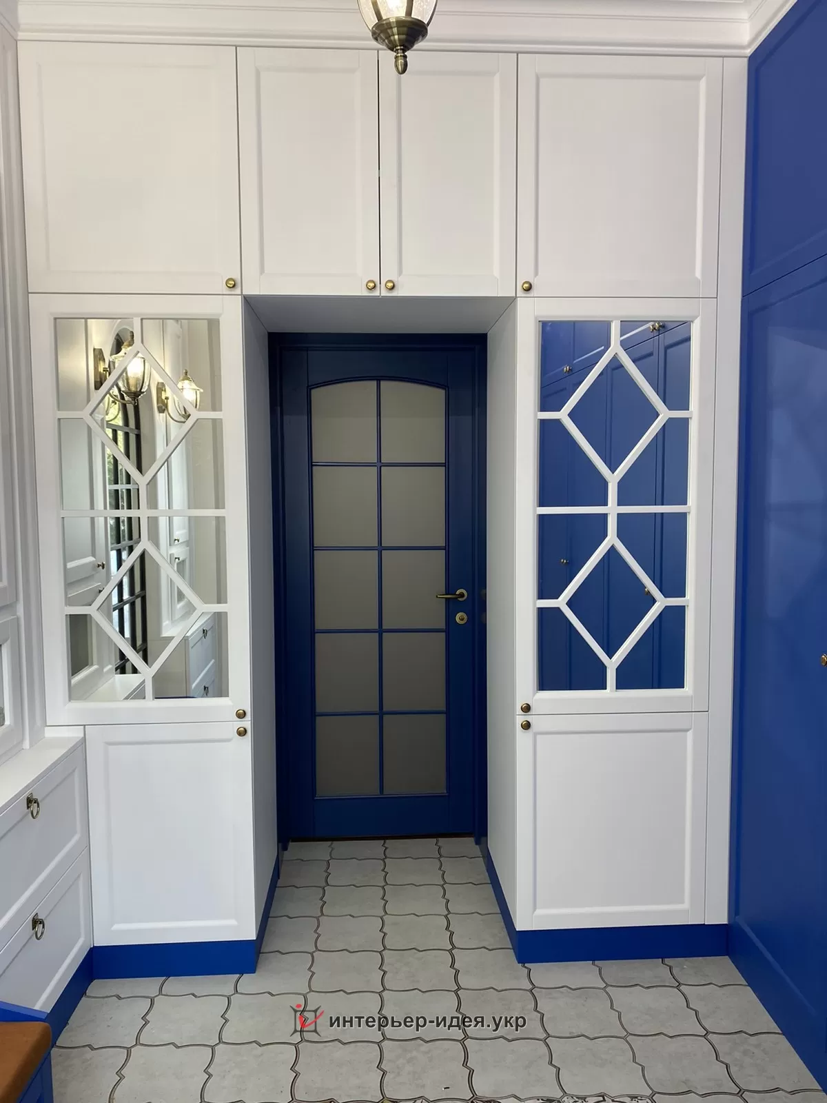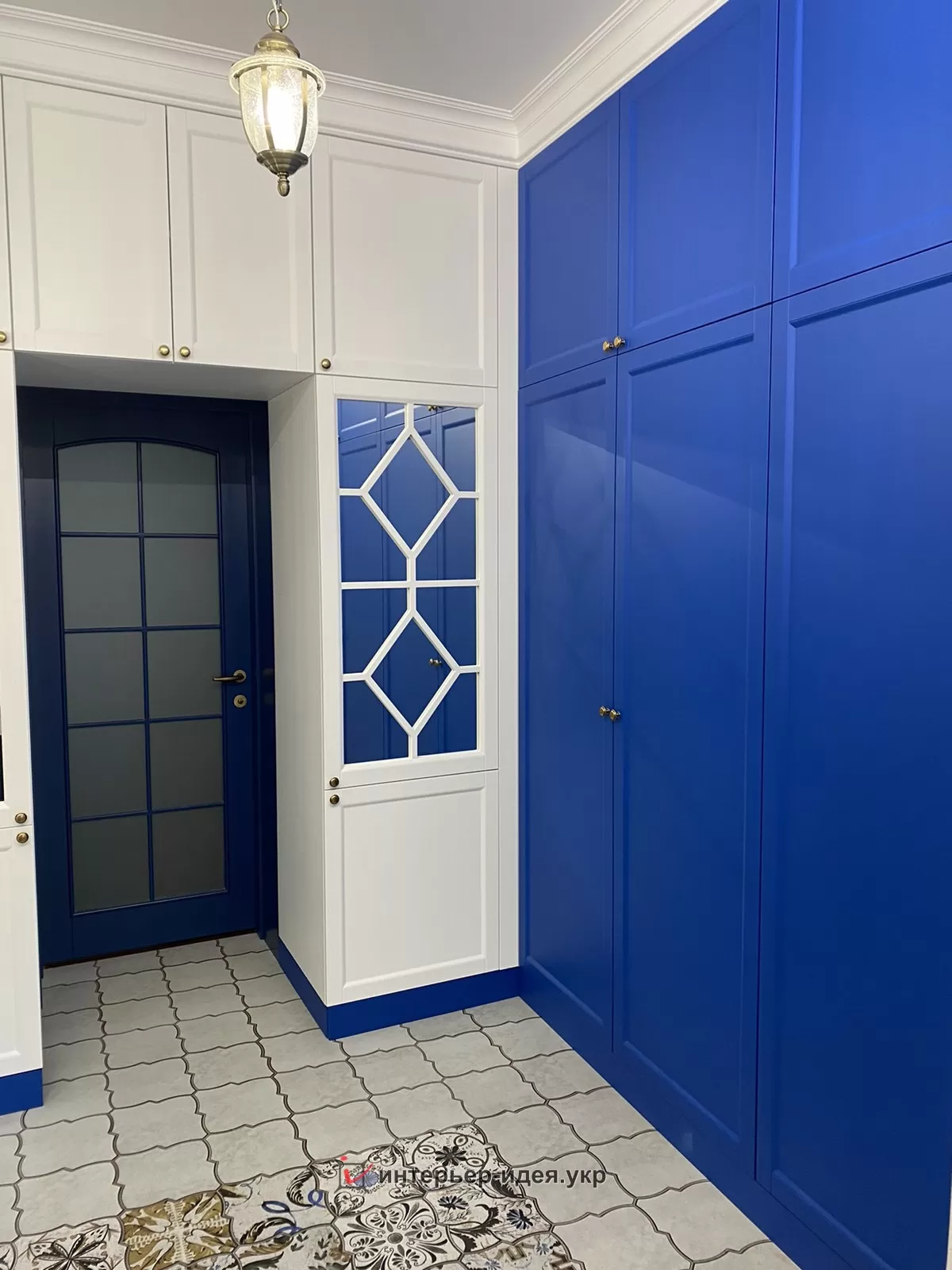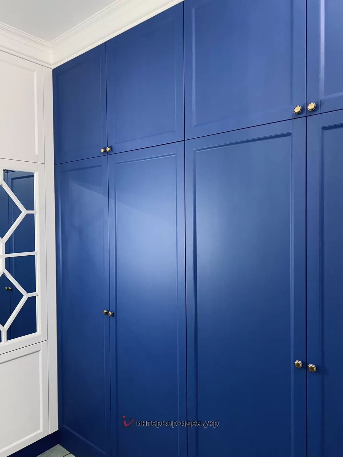Яркий цвет шкафа подчеркивает стиль помещения и перекликается с цветовой гаммой гостиной, в которую вы попадаем из прихожей.