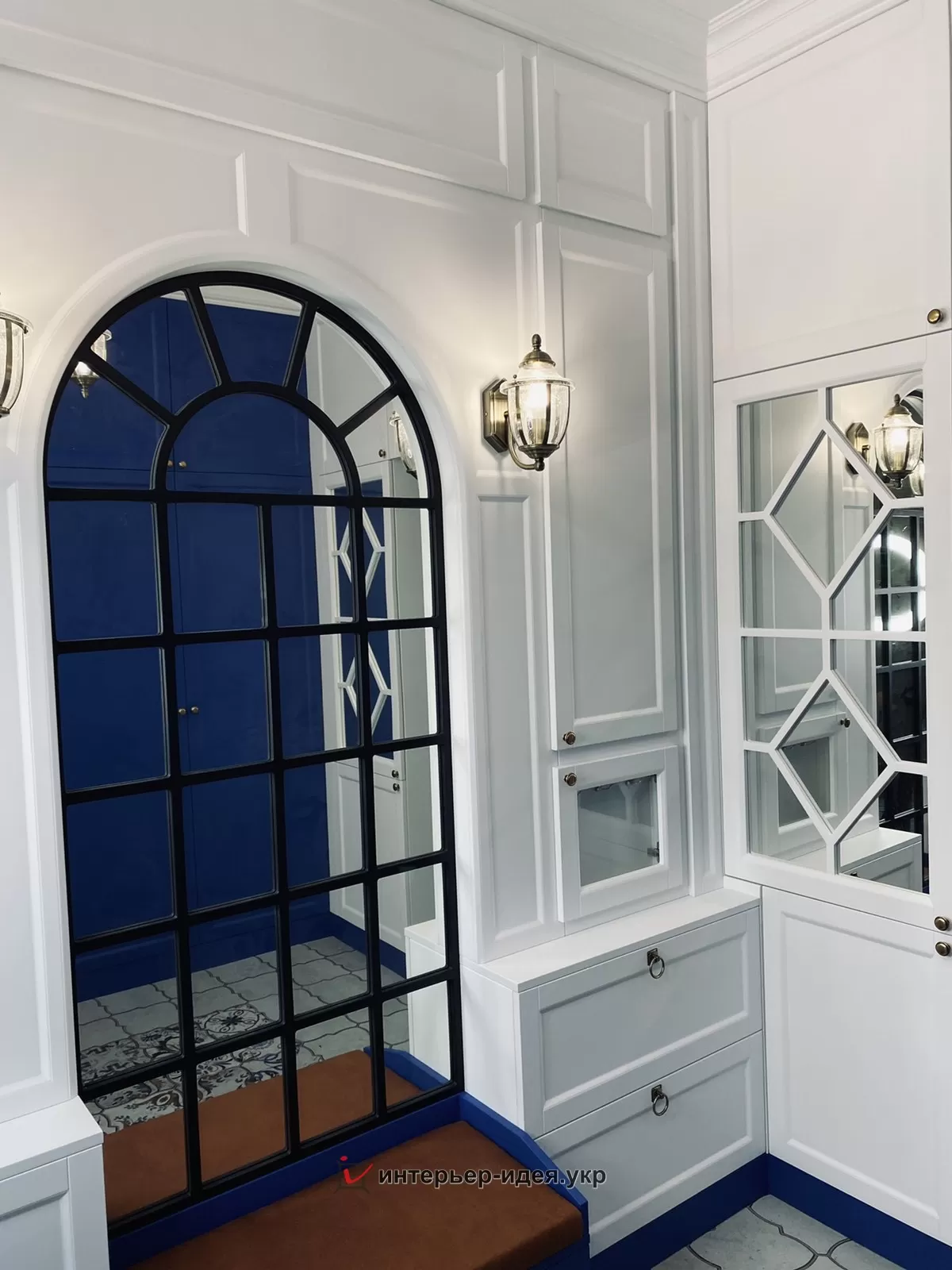 Идея дизайна данного помещения началась с зеркала в виде арочного окна.