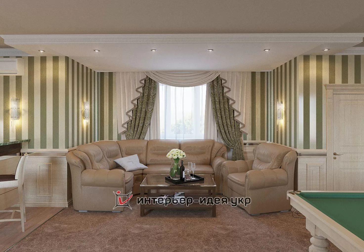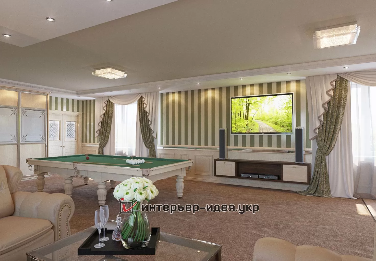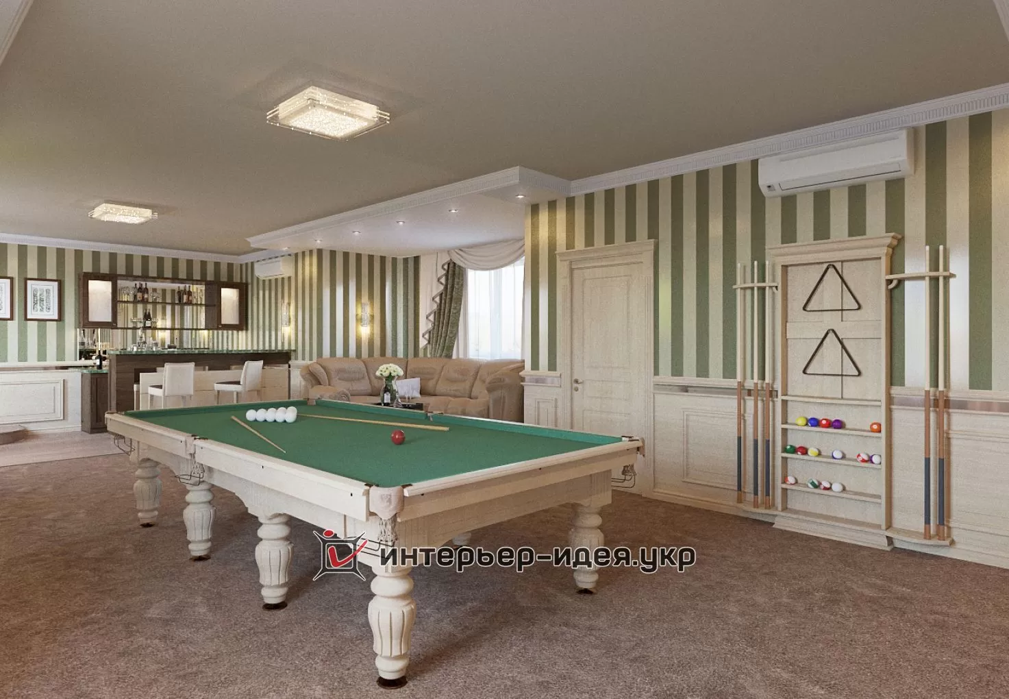 Дизайн интерьера бильярдной в стильную полоску, г. Черкассы
