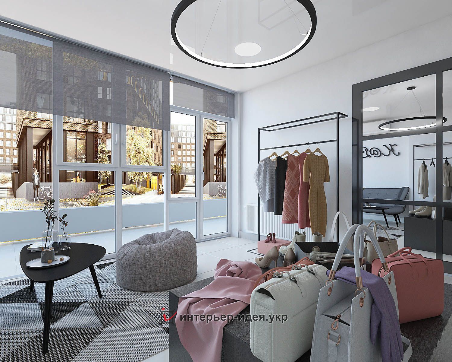 Молодая заказчица обратилась с просьбой оформить дизайн магазина одежды. Заказчица имела полное представление, что ей хотелось бы получить на выходе, плюс начальные данные помещения, которое она сняла в аренду, отвечали ее требованиям.
