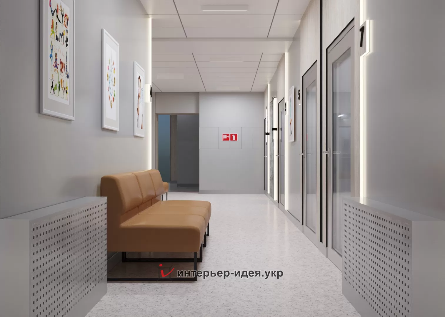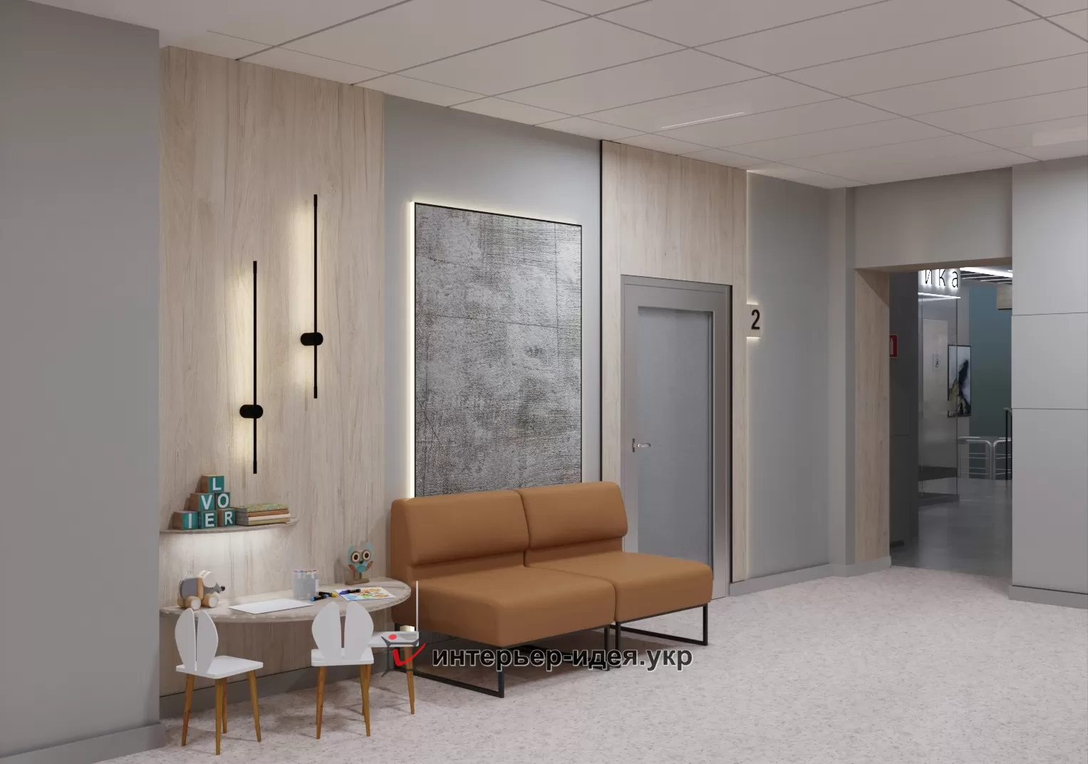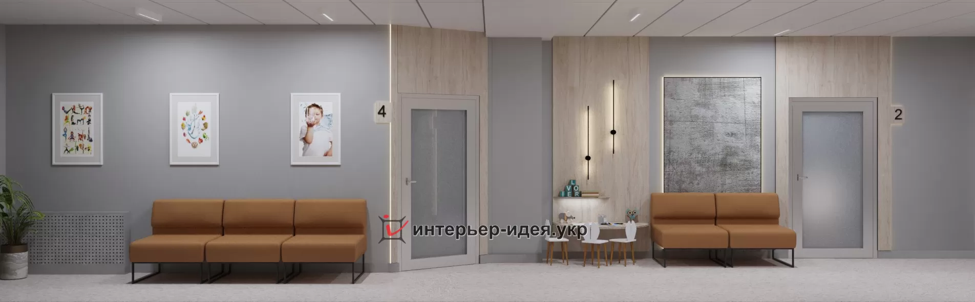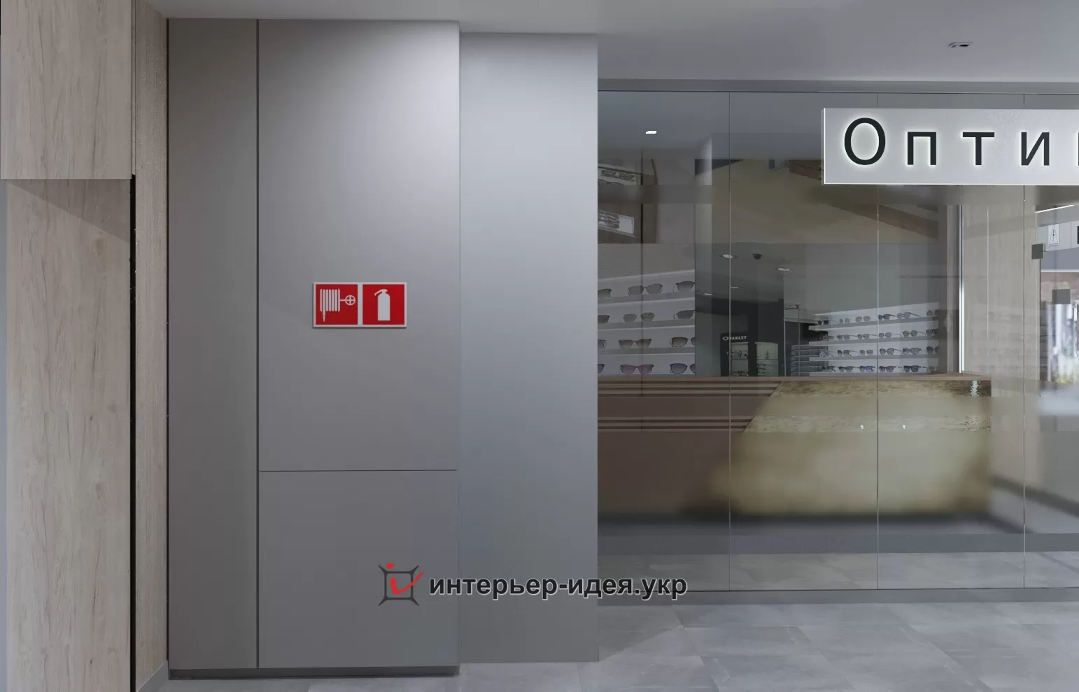Общее пространство было разделено на функциональные зоны: входная зона; рецепция; зона ожидания; коридор с помещением "Оптики" и коридор с кабинетами врачей.